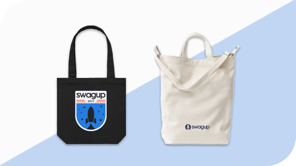 We especially recommend the premium cotton tote and Baggu Duck Bag for a quality swag experience (both available in the SwagUp catalog)