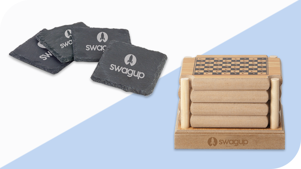 And that’s why we love coasters as swag items. They’re the perfect complement to a swag item that everyone has gotten, and you can do a lot with a coaster!