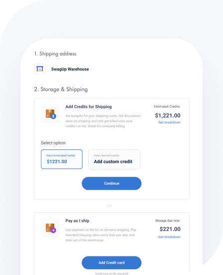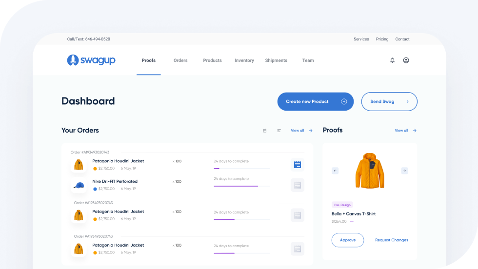 Your SwagUp dashboard will also give you real-time inventory updates for unused swag, help you track multiple shipments in one place, and assist in reordering company favorites.