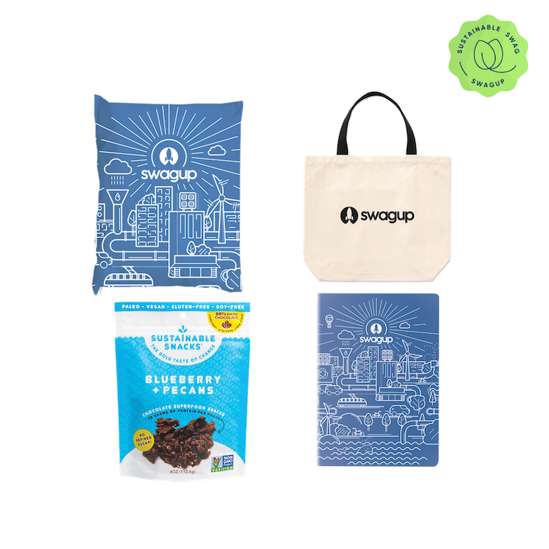 Read on to learn more about SwagUp’s Sustainability Stance, how we’re working in tandem with our suppliers to reduce our carbon footprint, and how to quickly find the best eco swag for your team, whether you’re building a custom swag pack or exploring sustainable swag for your next branded merch launch.