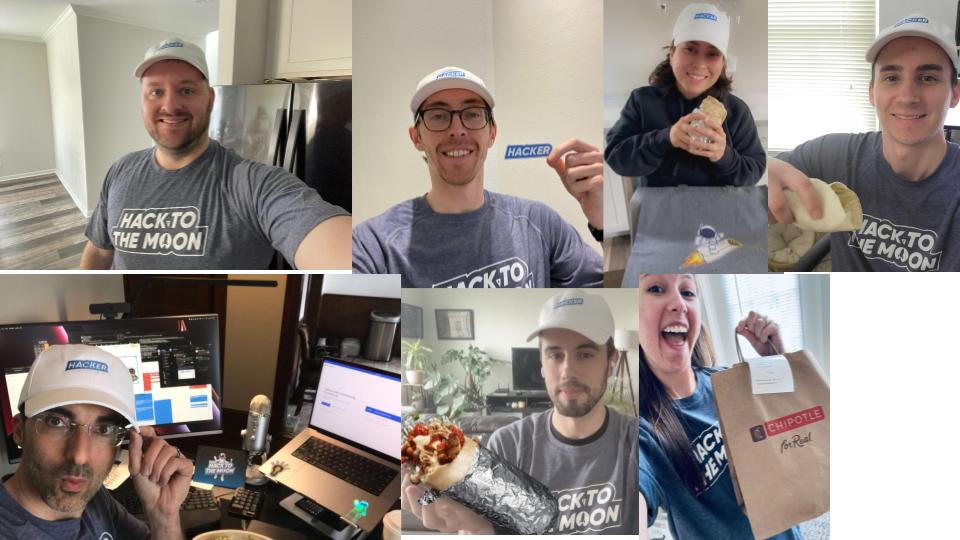 The hackathon swag became the uniform all week long; from the kickoff call on Thursday morning to the demo day the following Monday, hacker hats and the "hack to the moon" took over our Zoom rooms. The swag memorialized the event and brought everyone together and is still among our team's favorite swag we've ever done. Naturally, those who didn't participate were jealous, but that's their loss :)