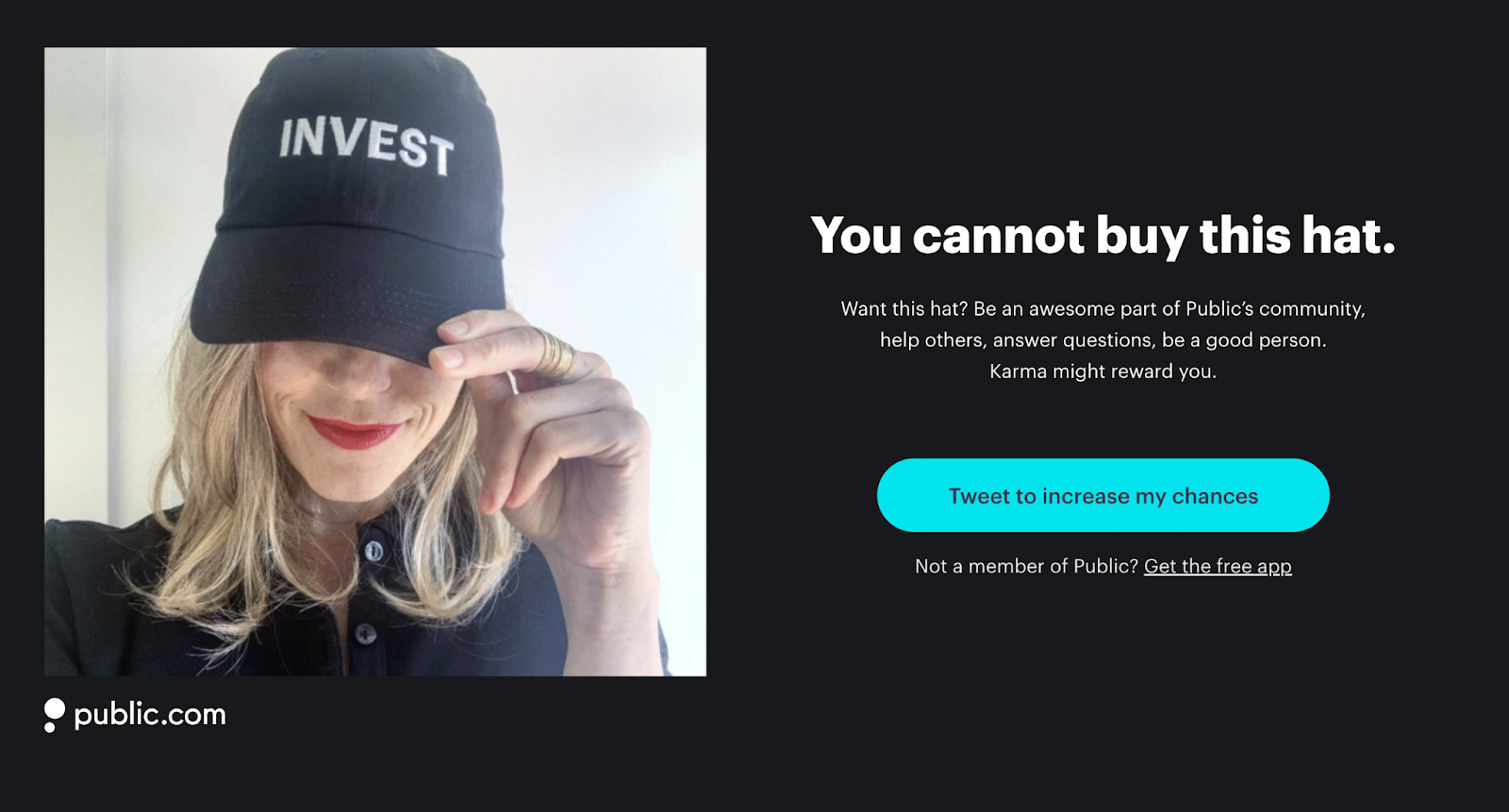 You may have seen Public’s “Invest” swag hat around social media, well you have to earn that hat! We must say this campaign has created a sense of fomo for anyone without that custom hat!