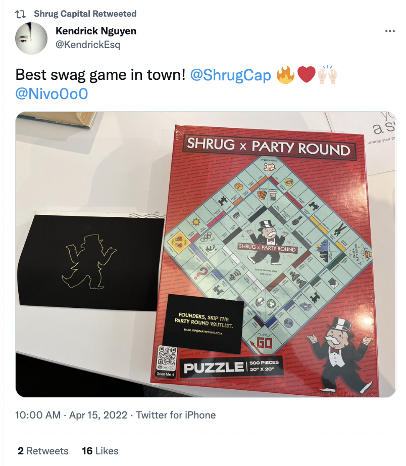 💡 Check out Party Round & Shrug Capital in our Best Swag of The Internet