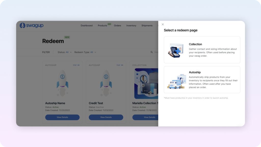 We're excited to announce Autoship for Redeem Pages is launching very soon. This means if you were waiting for the moment your redeem page recipients could get swag automatically shipped to them... the time has come.