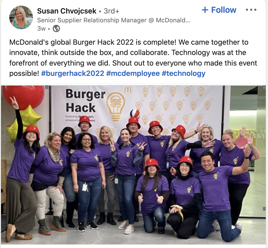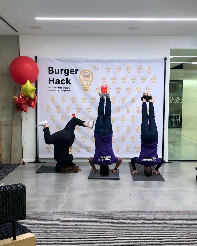 So make your hackathon swag fun and part of the overall experience. McDonald's named their hackathon "Burger Hack" and had some creative swag that complimented their brand and the hackathon itself. McDonald's has one of the hackers, Maitree Shukla's, a Global Technology Rotational member, document her experience during the hack, and as you will see in our swag in the wild, most of the images included swag.
