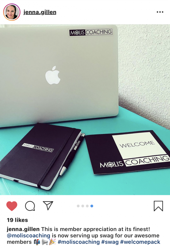 THE DETAILS: Molis Coaching helps their newest members celebrate the start of an exciting journey as they join a community of dentists passionate about growing their Invisalign practices! We love that the Molis team recognizes the moment with a well-timed welcome swag pack (bonus points for picking swag that help new members get the most out of their membership!)