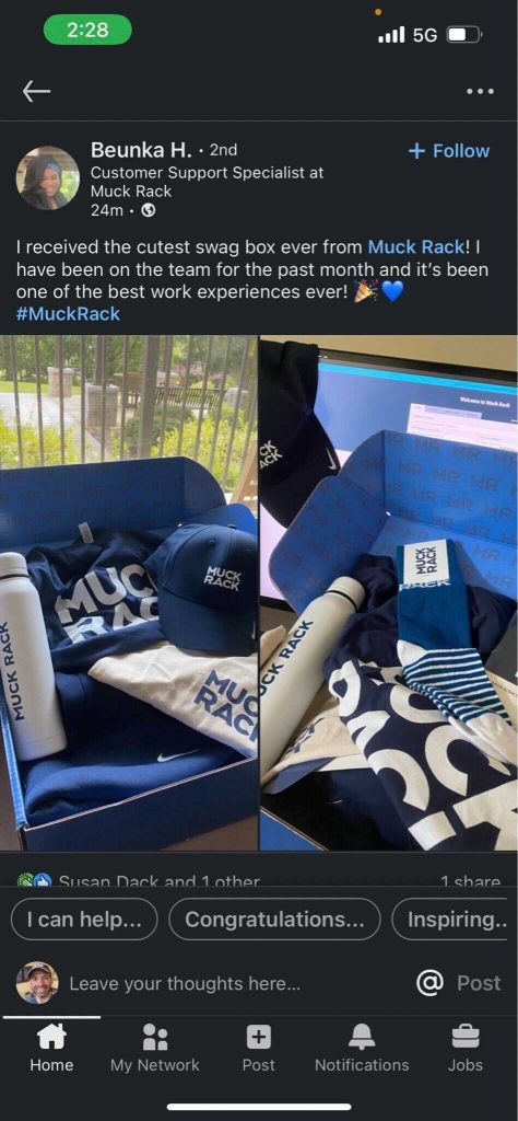 Furthermore, we have seen live examples from customers who share stories of employees feeling extremely welcomed and part of something bigger by the simple gift of swag. Here are a few examples we have collected from our customers. You can’t replicate this any other way. Swag makes the experience memorable and last longer since they have something tangible to bring them back to that moment they felt a part of something.